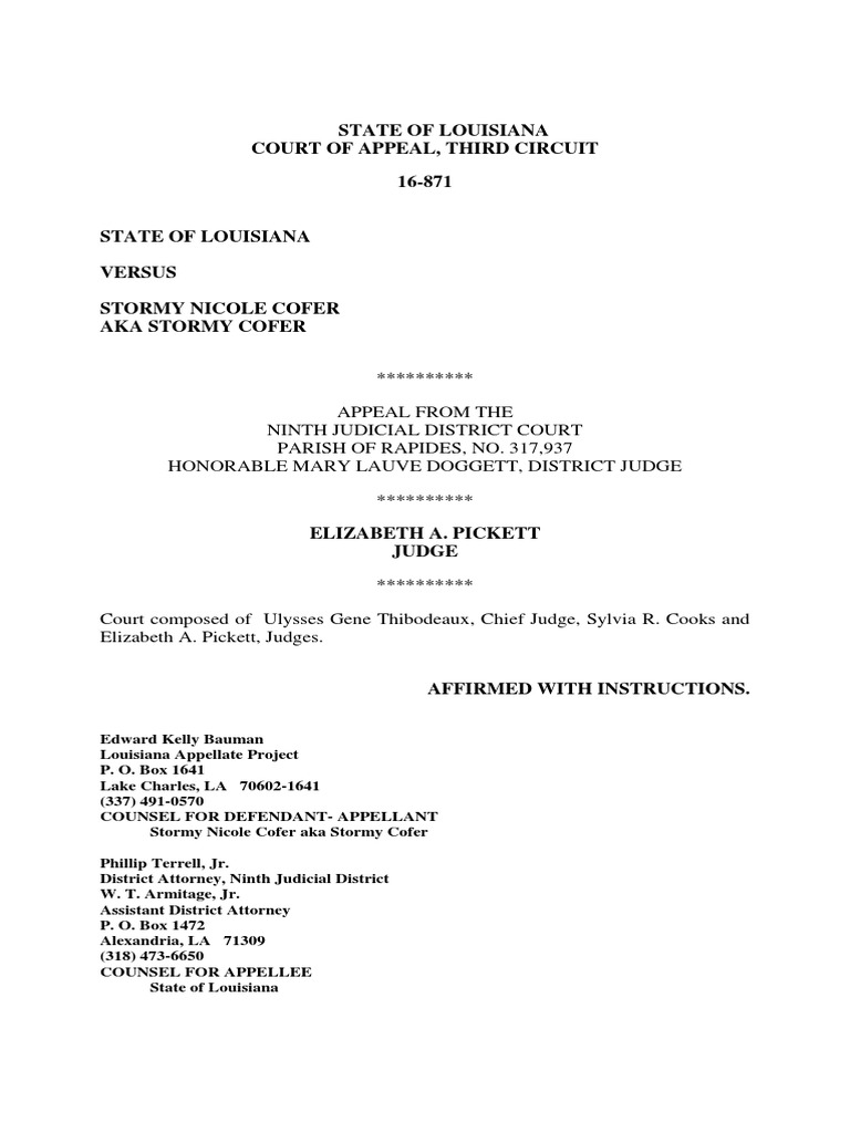 She is eligible for parole. Cofer returns with new bag of tricks. This young lady name is stormy cofer i saw her story on t.v. First of all, do you prefer 'stormy' or your. Cofer was a virginian gunsmith who made revolvers for the confederate cause during the civil just a few weeks after the opening of the csa's formal patent office, cofer submitted a patent for a.