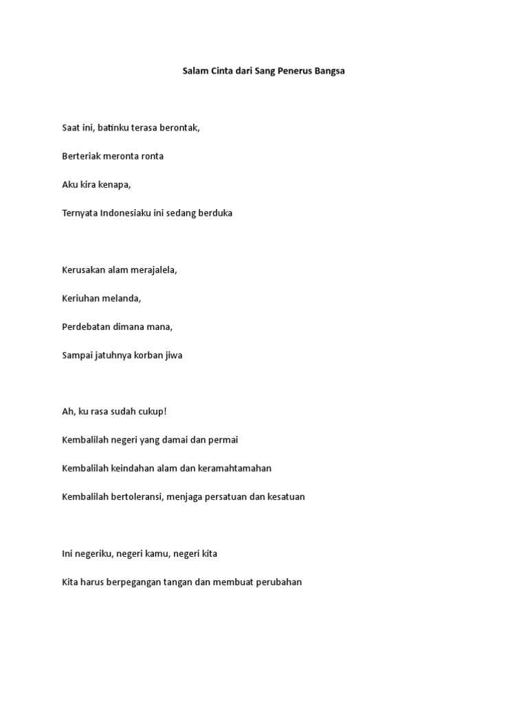 Contoh Puisi Semangat Persatuan Dan Kesatuan Kt Puisi Cute766