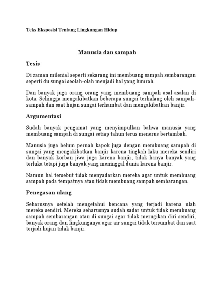 Untuk pembahasan kali ini kami akan memberikan ulasan mengenai Contoh Karangan Argumentasi yang dimana dalam hal ini meliputi Tentang Pendidikan Kesehatan Sampah Narkoba Banjir Teknologi Rokok dan Guru nah agar. Teks eksposisi tentang Banjir 1. Admin dari blog Terkait Teks 2019 juga mengumpulkan gambar-gambar lainnya terkait teks eksposisi tentang banjir beserta strukturnya dibawah ini.