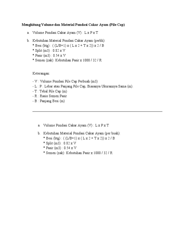 Ilmu bangunan dapat di bedakan menurut ragam bahan rangka yang di pakai apakah mau mengaplikasikan kayu atau hollowUntuk pengertian kayu mungkin sahabat sahabat sekaligus telah mengetahuinya. Menghitung Volume dan Material Pondasi Cakar Ayam Pile Cap a. Download Full PDF Package.