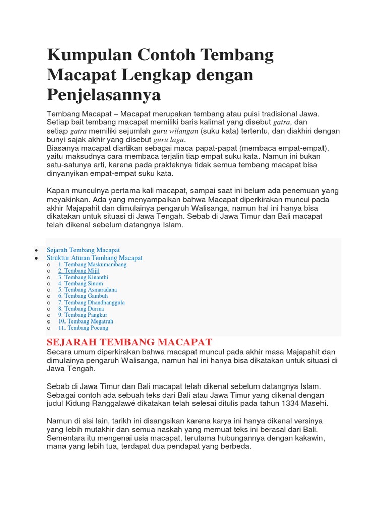 Contoh tembang macapat gambuh buatan sendiri dan artinya beserta artinya tema lingkungan tema pendidikan tema tingkah lakudan maknanya. Berikut contoh lirik tembang gambuh bertema pendidikan dengan wewaton baku 7u 10u 12i 8u 8o. Tetapi sebelumnya saya akan memberikan penjelasan tentang tembang sinom itu sediri.
